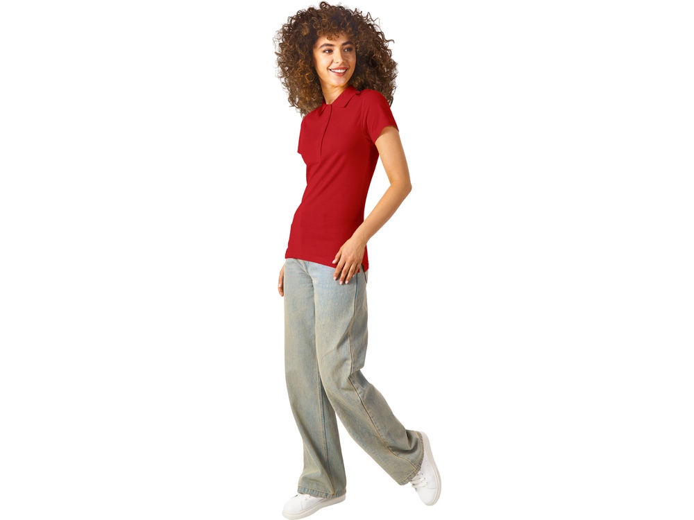 Женская рубашка-поло First. Воротник 1х1. Обшивка внутри воротника. Мужская и детская модели с 2 пуговицами, женская - с 4 пуговицами. Пуговицы с гравировкой в тон. Пике, 100% хлопок. 160 г/м2. Данная модель на 1 размер больше модели женского поло First.