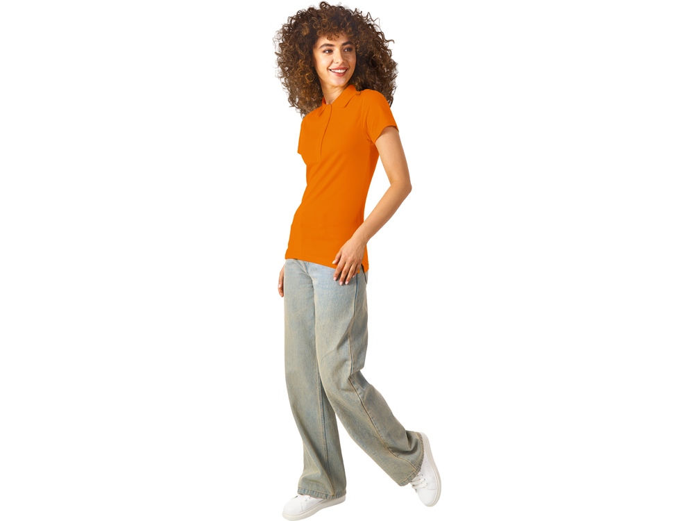 Женская рубашка-поло First. Воротник 1х1. Обшивка внутри воротника. Мужская и детская модели с 2 пуговицами, женская - с 4 пуговицами. Пуговицы с гравировкой в тон. Пике, 100% хлопок. 160 г/м2. Данная модель на 1 размер больше модели женского поло First.