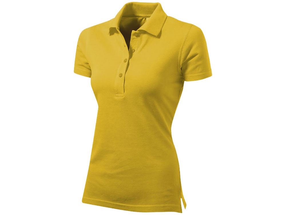 Женская рубашка-поло First. Воротник 1х1. Обшивка внутри воротника. Мужская и детская модели с 2 пуговицами, женская - с 4 пуговицами. Пуговицы с гравировкой в тон. Пике, 100% хлопок. 160 г/м2.