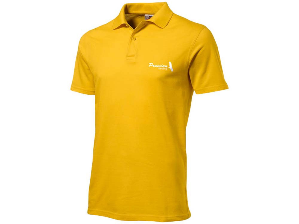 Рубашка-поло First. Воротник 1х1. Обшивка внутри воротника. Мужская и детская модели с 2 пуговицами, женская - с 4 пуговицами. Пуговицы с гравировкой в тон. Пике, 100% хлопок. 160 г/м2.