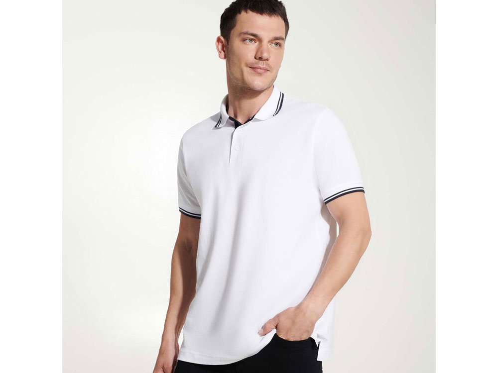 Поло с коротким рукавом. Воротник и манжеты из риба 1х1 с отделкой двойной контрастной плоской. Внутренняя планка контрастного цвета, застежка на 3 пуговицы. Разрезы в боковых швах. Премиальное плотное пике 230 гр.
