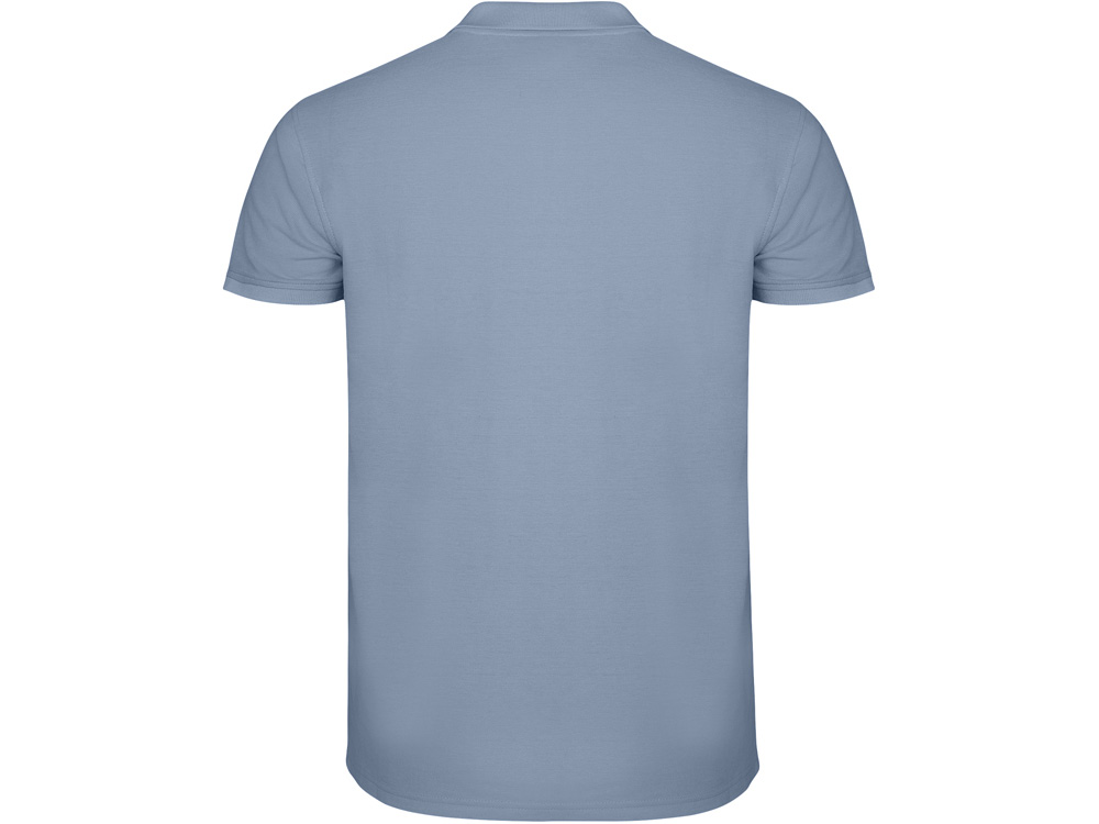 Поло с коротким рукавом, воротник и манжеты из риба 1х1, отделка горловины внутри тесьмой. Планка застегивается на 3 пуговицы. Разрезы в боковых швах. В ассортименте также представлены аналогичная женская модель Star.