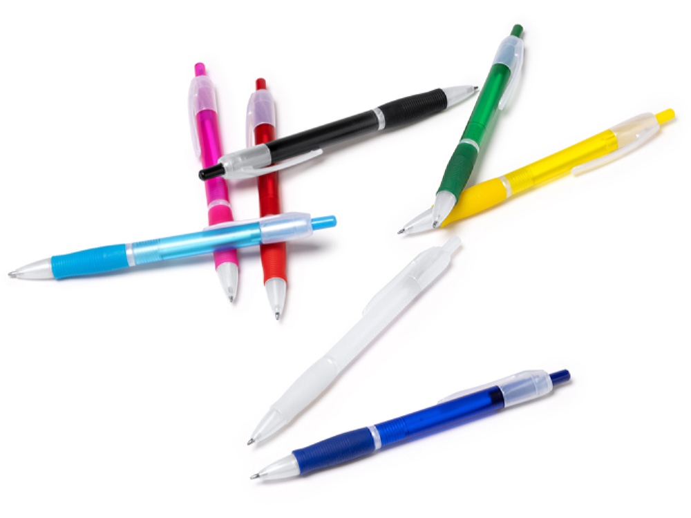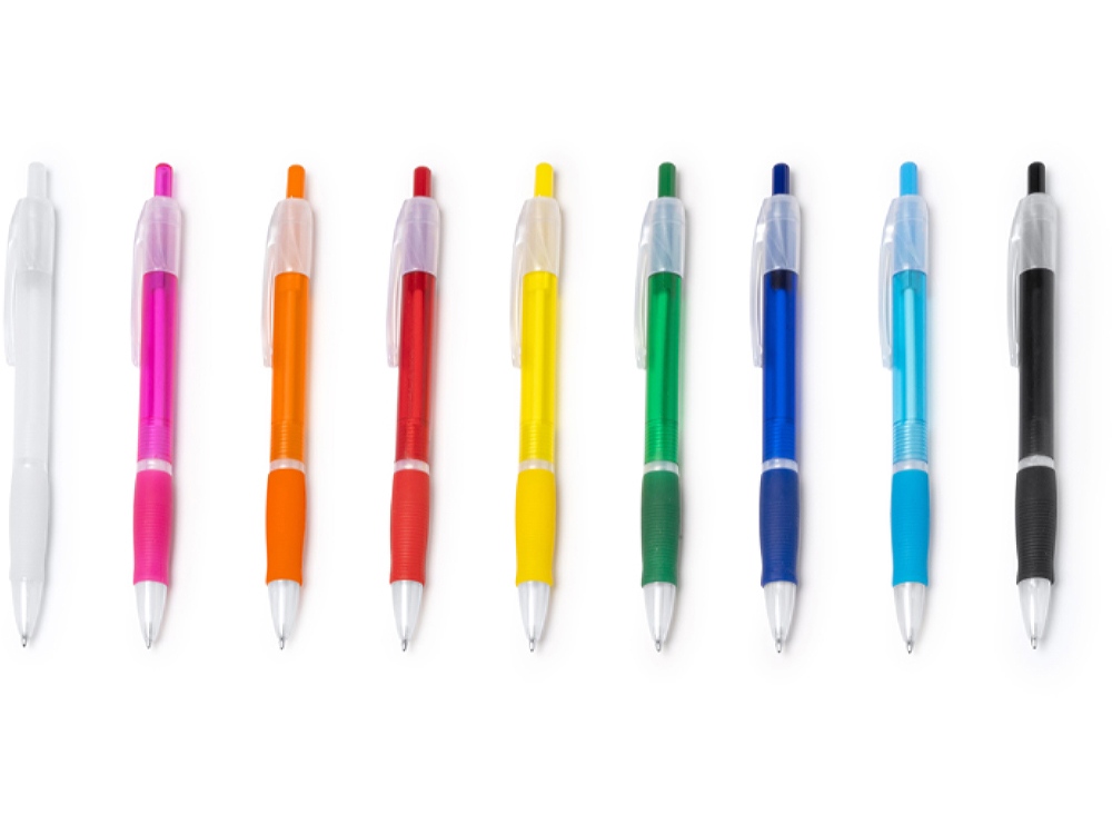 Шариковая ручка с полупрозрачным покрытием и удобным грипом. Синие чернила.