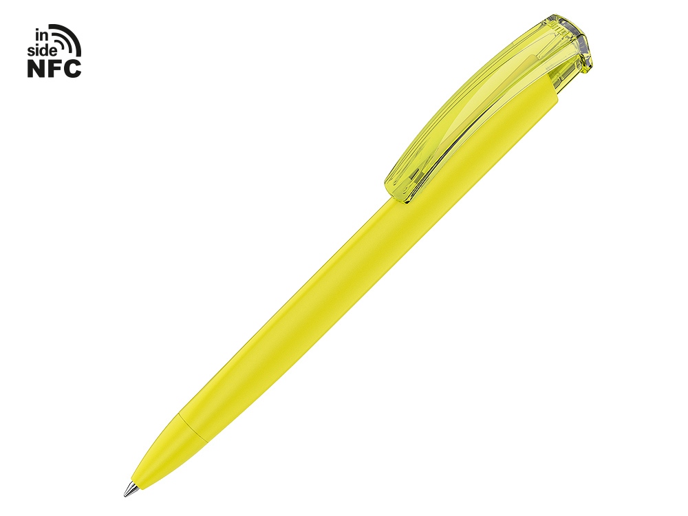 Пластиковая шариковая ручка Trinity K transparent Gum soft-touch с чипом передачи информации NFC обеспечивает быстрый доступ к рекламной информации. Для передачи данных посредством технологии NFC смартфон или планшет, которые поддерживают данную технологию, необходимо поднести к запрограммированной на ручке метке NFC (метка расположена под логотипом NFC). После этого на смартфоне или планшете откроется запрограммированная ссылка на сайт, ролик или начнется загрузка другой информации (заранее загруженной в сеть интернет). Таким образом метка работает как код, при чтении которого смартфон или планшет открывает определенную программу, активирует функцию или ссылку. Можно запрограммировать на метке NFC адрес сайта, каталог и другие рекламные материалы и раздавать вместо визиток. Метка NFC активирует одно действие на смартфоне или планшете. Внимание, программирование метки производится только компанией UMA. Если вы разместили заказ на ручку с меткой, но не прислали информацию, которую необходимо на нее записать, в заказе может быть отгружена ручка без чипа NFC.