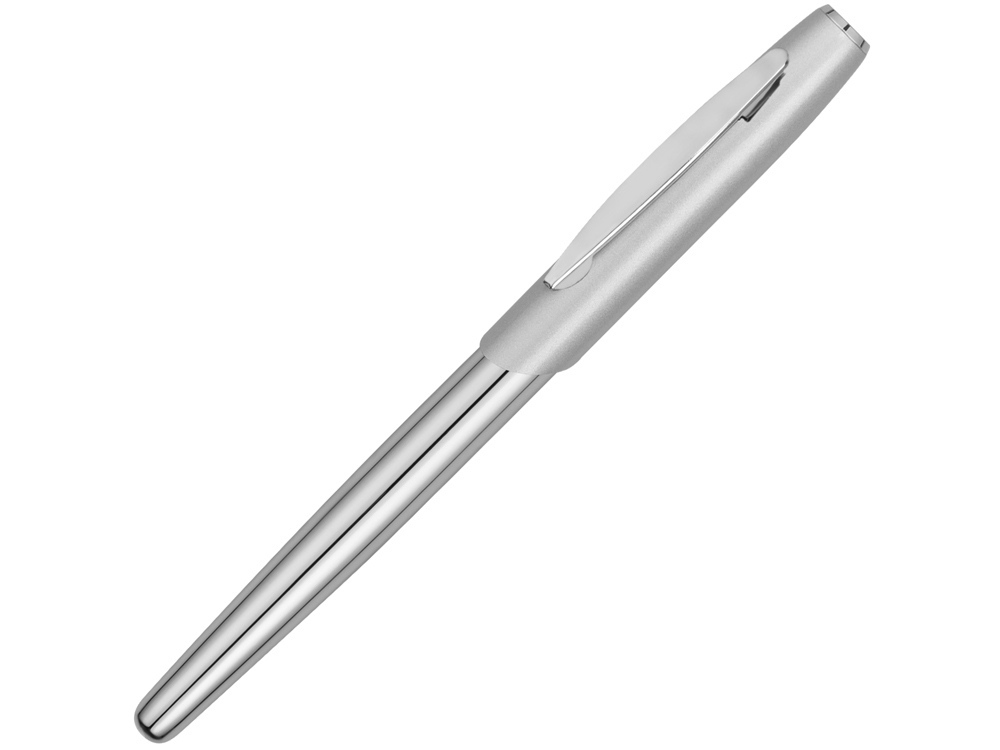 Изящная ручка-роллер с матовой верхней частью и блестящей хромированной нижней частью и соответствующими хромированными вставками.