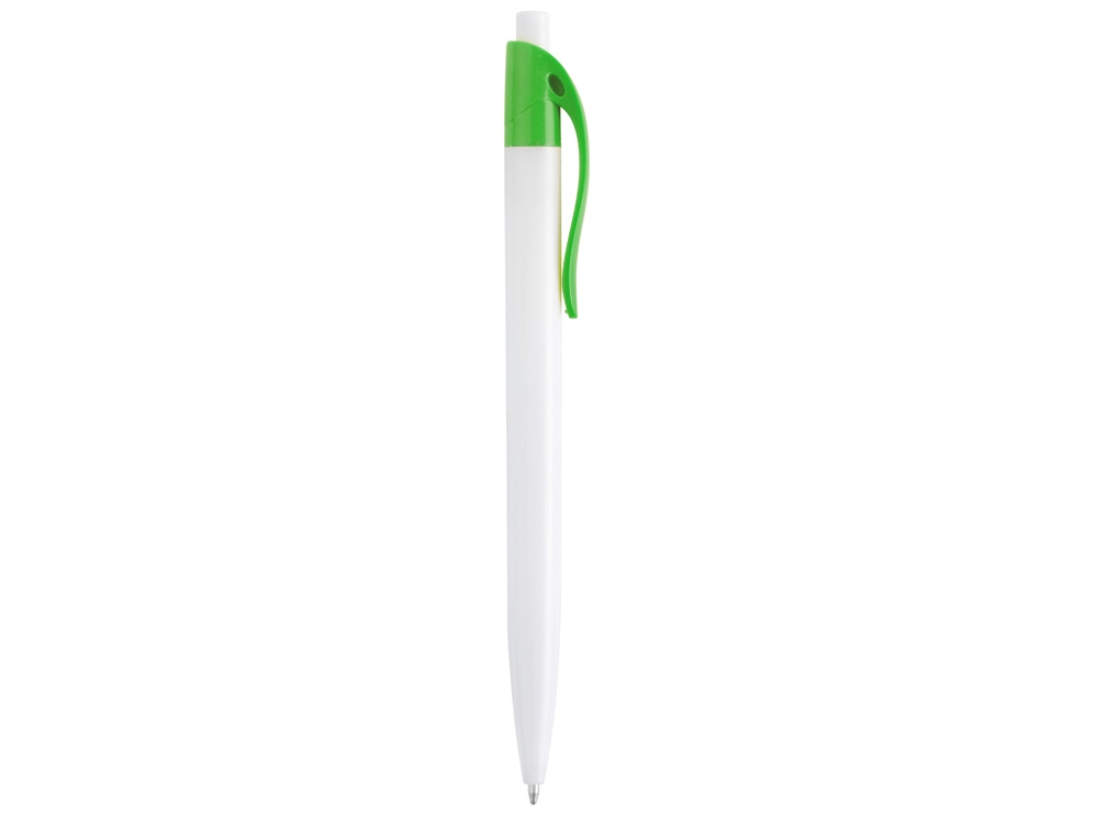 Стильная пластиковая ручка с ярким цветным клипом и белым корпусом отлично подойдет для нанесения логотипов и рекламной информации. Нажимной механизм.