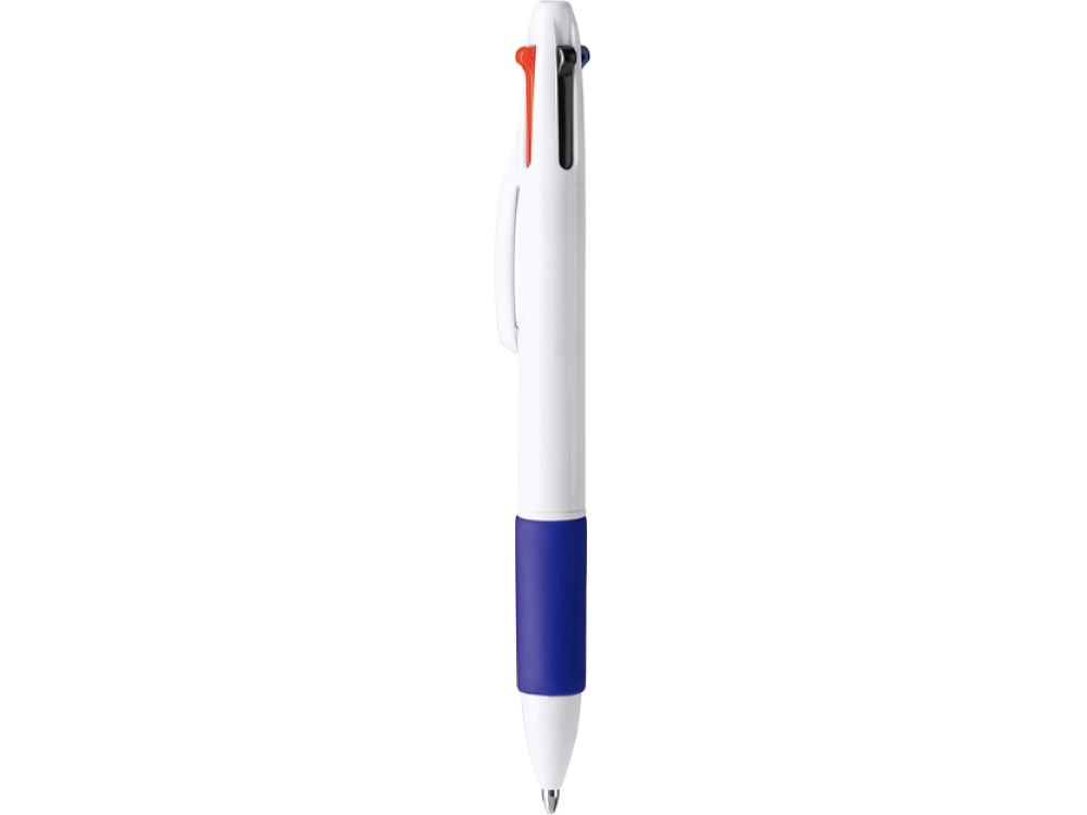 Шариковая ручка с чернилами 4-х цветов. Корпус из АБС-пластика с мягким цветным грипом. Чернила синего, черного, красного и зеленого цветов.