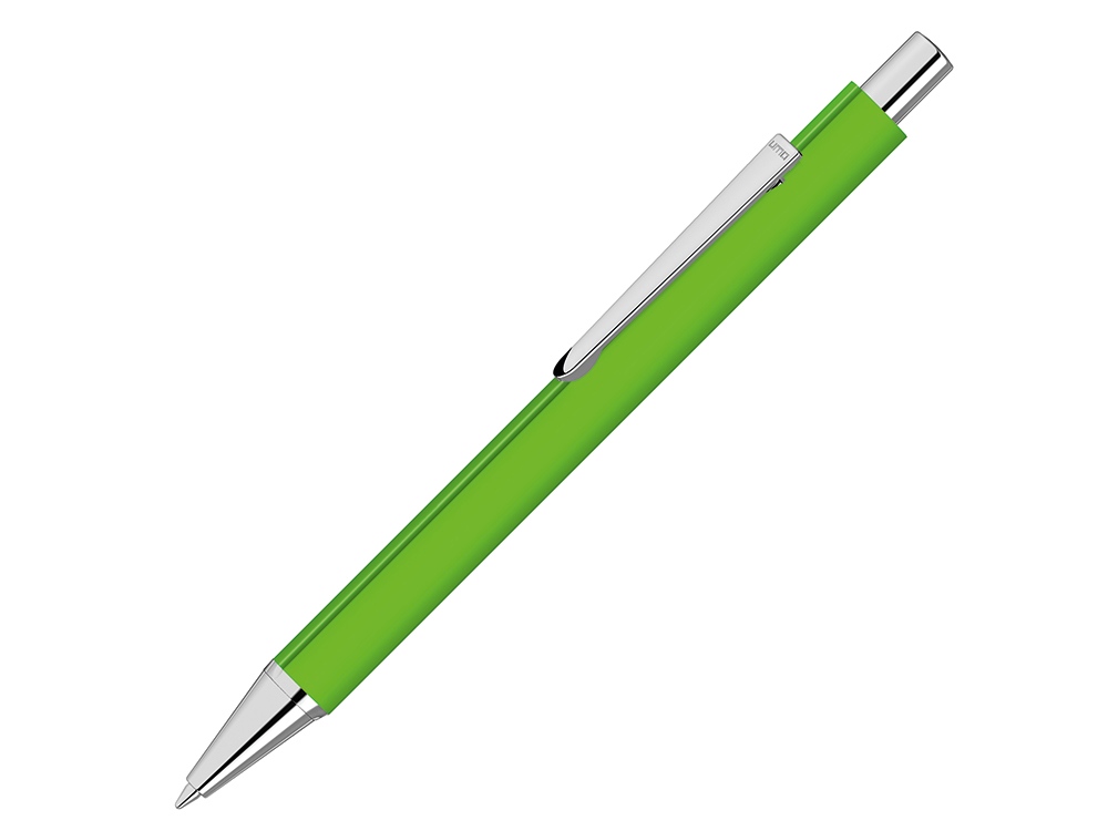 Нажимная металлическая шариковая ручка в прорезиненном soft-touch треугольном корпусе, с металлическим наконечником и кнопкой в глянцевом хроме.