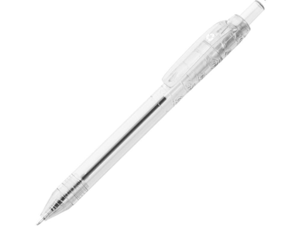 Полупрозрачная дизайнерская ручка из материала RPET. Кнопочный механизм. Синие чернила