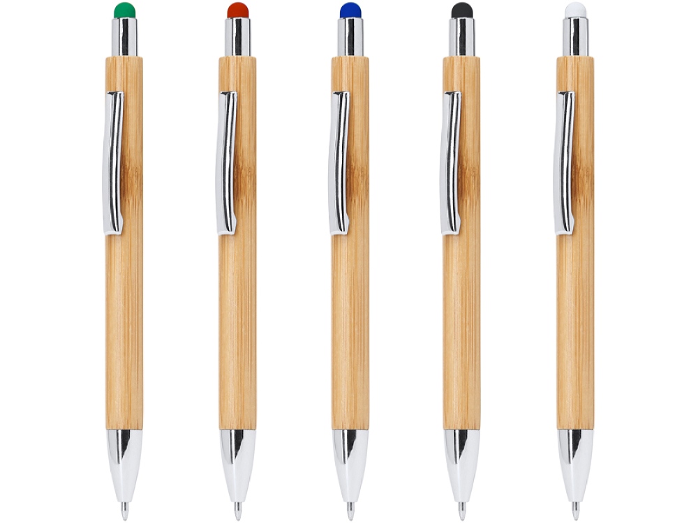 Шариковая ручка Eco line с корпусом из бамбука, цветным стилусом и металлическим клипом. Толщина стержня 1,0 мм. Синие чернила
