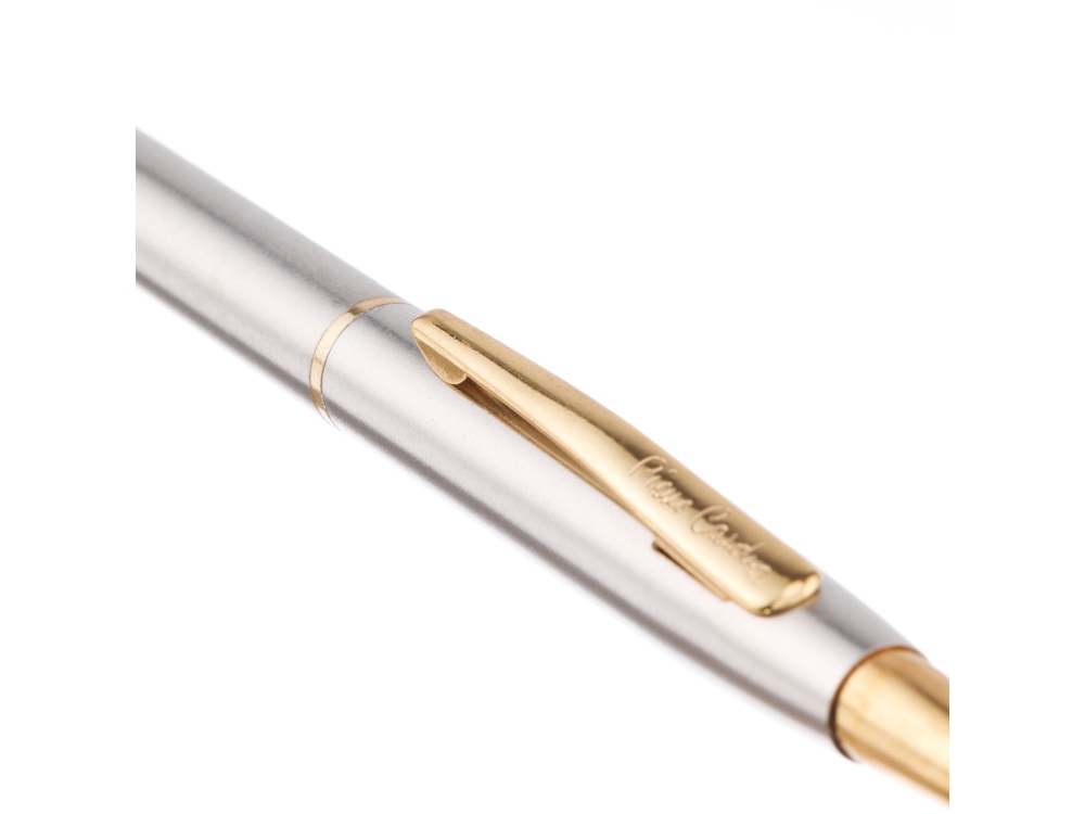 Шариковая ручка Pierre Cardin GAMME • Корпус - латунь. Цвет - серебристый; • Отделка - хромоникелевое покрытие; • Детали дизайна - золотистого цвета; • Упаковка - картонная коробочка черного цвета с картонным ложементом красного цвета; • Размер упаковки -175 х 55 х 35 мм, вес 35 гр Комплектация: • Металлический шариковый стержень с логотипом Pierre Cardin на корпусе с чернилами синего цвета; • Инструкция по использованию ручки. Экономичные ручки Pierre Cardin серии GAMME - прекрасное начало для больших дел! Большое всегда начинается с малого! Широкая гамма отделок и элементов дизайна, разнообразие форм и размеров, неповторимое сочетание стилей все это создает новый уровень элегантности по доступной цене.