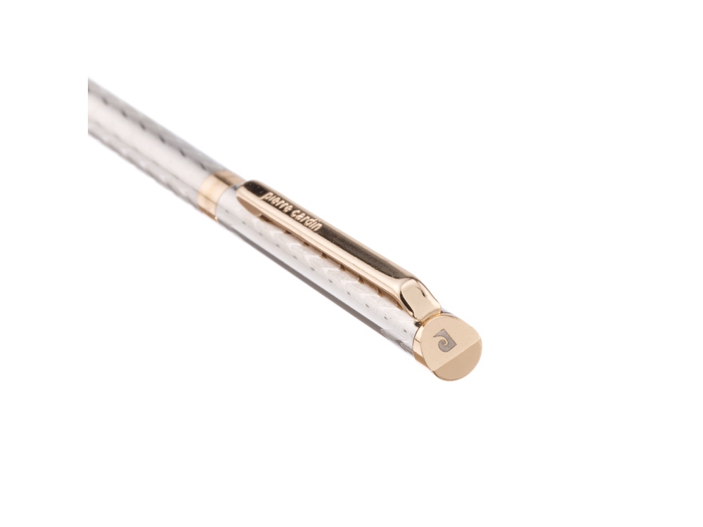 Шариковая ручка Pierre Cardin SLIM • Корпус - латунь. Цвет - серебристый; • Отделка - серебристого цвета; • Детали дизайна - золотистого цвета; • Упаковка - картонная коробочка черного цвета с картонным ложементом красного цвета; • Размер упаковки -175 х 55 х 35 мм, вес 35 гр Комплектация: • Металлический шариковый стержень с логотипом Pierre Cardin на корпусе с чернилами синего цвета; • Инструкция по использованию ручки. SLIM – Утонченная классика. Эта серия пишущих инструментов Pierre Cardin предназначена для ценителей классического стиля. Тонкий корпус и закругленные элементы дизайна придают ручке особый шарм эпохи Романтизма. Идеальный подарок для тех, кого мы любим.
