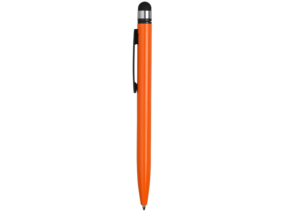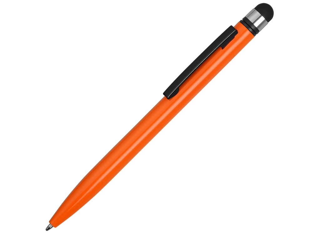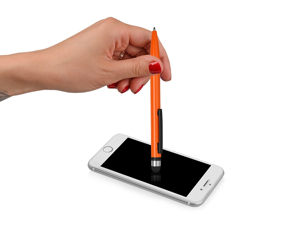 Металлическая ручка со стилусом. Удачное расположение поворотного механизма предотвращает от случайного появления стержня во время использования стилуса, при этом оставляя большое поле под нанесение на корпусе. Идеальная пара для любого смартфона!