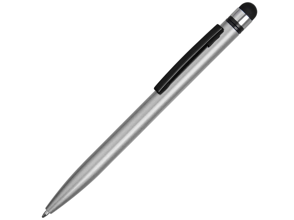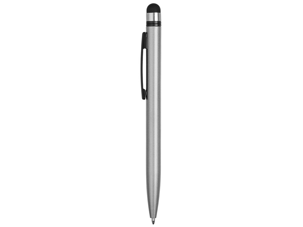 Ручка-стилус пластиковая шариковая Poke, серебристый/черный купить оптом и в розницу с нанесением логотипа в Уфе