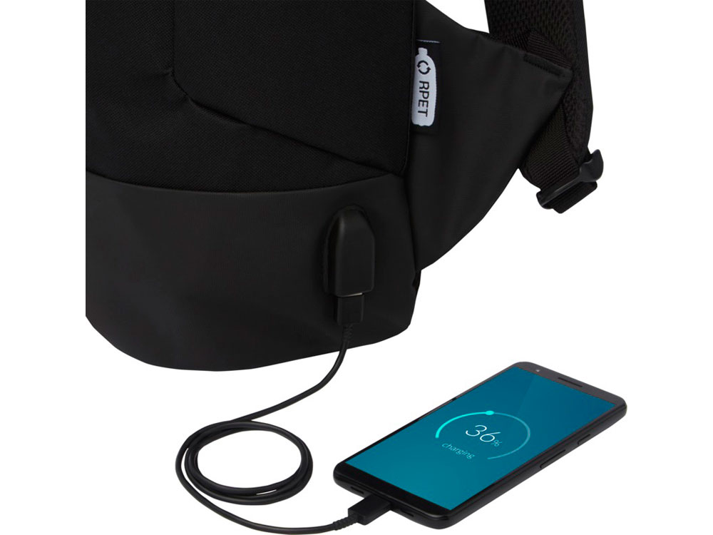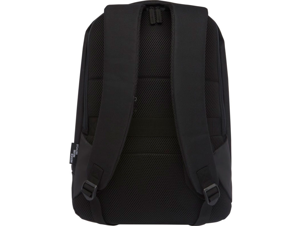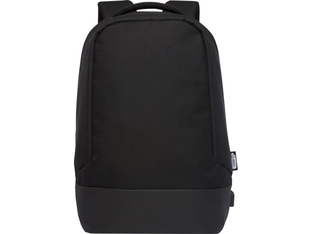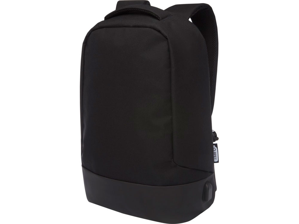 Противокражный рюкзак Cover для ноутбука 15’’ из переработанного пластика RPET. Рюкзак оснащен противокражный конструкцией – молния основного отделения смещена к спинке. Кроме этого 2 кармана рюкзака оснащены системой от несанкционированного считывания данных RFID. В основном отделении расположен органайзер и плотный карман для ноутбука 15’’. USB порт на правой стороне для удобного подключения и зарядки устройств изнутри. С мягкими плечевыми ремнями, скрытым карманом на молнии, ручкой для переноски и ремнем для крепления к чемодану. Изготовлен из переработанного пластика – на изготовление ушло 15 пластиковых бутылок.