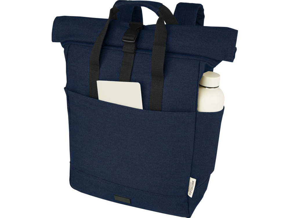 Изготовленный из высокопрочных экологичных материалов, брезента и подкладки из переработанного ПЭТ, соответствующих стандарту GRS, рюкзак Joey со сворачивающимся верхом имеет специальный чехол для планшета и отделение с подкладкой для ноутбука диагональю 15 дюймов. Рюкзак также имеет 2 боковых кармана для воды, один большой передний карман на молнии и сворачивающуюся верхнюю часть на молнии для максимальной вместимости и безопасности. Две усиленные вязанные ручки обеспечивают удобство и простоту ношения в качестве деловой сумки-тоут. Декоративная металлическая пластина может придать логотипу сияние благодаря утонченному матовому покрытию.