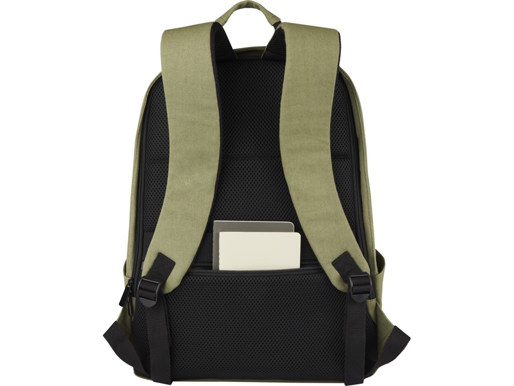 Изготовленный из высокопрочных экологичных материалов, брезента и подкладки из переработанного ПЭТ, соответствующих стандарту GRS, рюкзак с защитой от кражи Joey имеет специальный чехол для планшета и отделение с подкладкой для ноутбука диагональю 15,6 дюймов. Рюкзак также имеет сетчатый карман и внутренние отделения для организации вещей, 2 боковых кармана для воды, один передний карман на молнии и скрытый карман на спине для легкого и безопасного доступа на ходу. Декоративная металлическая пластина может придать логотипу сияние благодаря утонченному матовому покрытию.