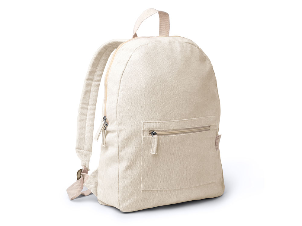 Экологичный рюкзак из переработанного хлопка плотностью 320 г/м². Передний карман и мягкие ручки.