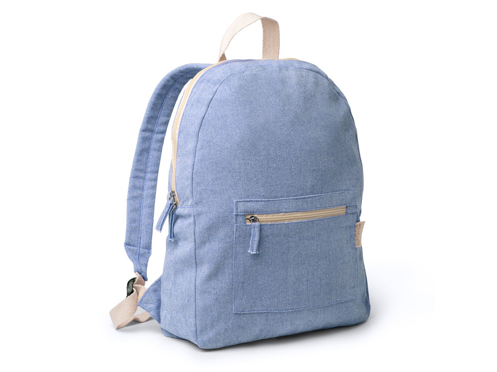 Экологичный рюкзак из переработанного хлопка плотностью 320 г/м². Передний карман и мягкие ручки.