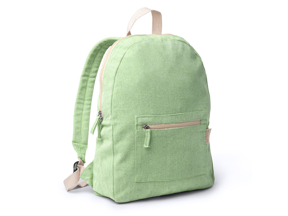 Экологичный рюкзак из переработанного хлопка плотностью 320 г/м². Передний карман и мягкие ручки.