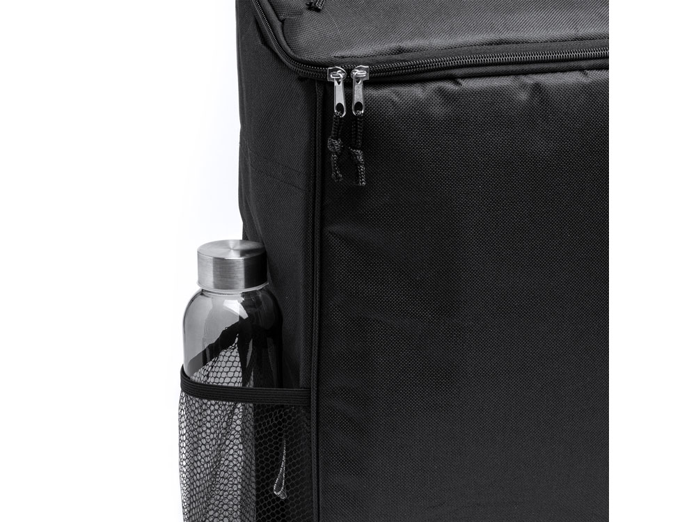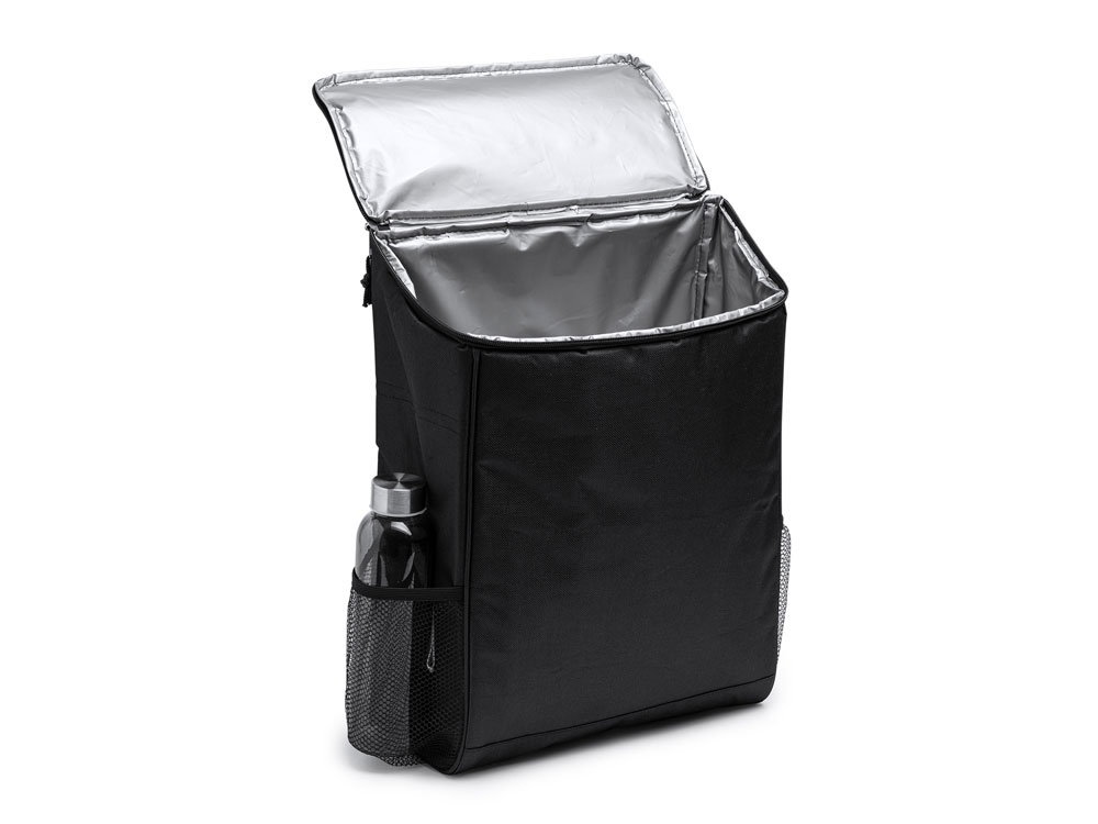 Рюкзак-холодильник из RPET идеально подходит для хранения напитков или еды. Основное отделение с изотермической подкладкой и карманом с клапаном. Сетчатые боковые карманы. 19 литров. Мягкая спинка и лямки.