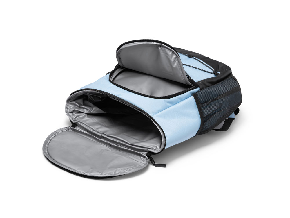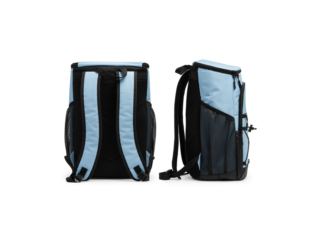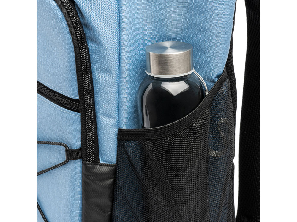 Рюкзак-холодильник из полиэстера 210D Ripstop. Основное отделение и передний карманы с изотермической подкладкой. Переднее отделение на эластичном шнуре и боковые сетчатые карманы.