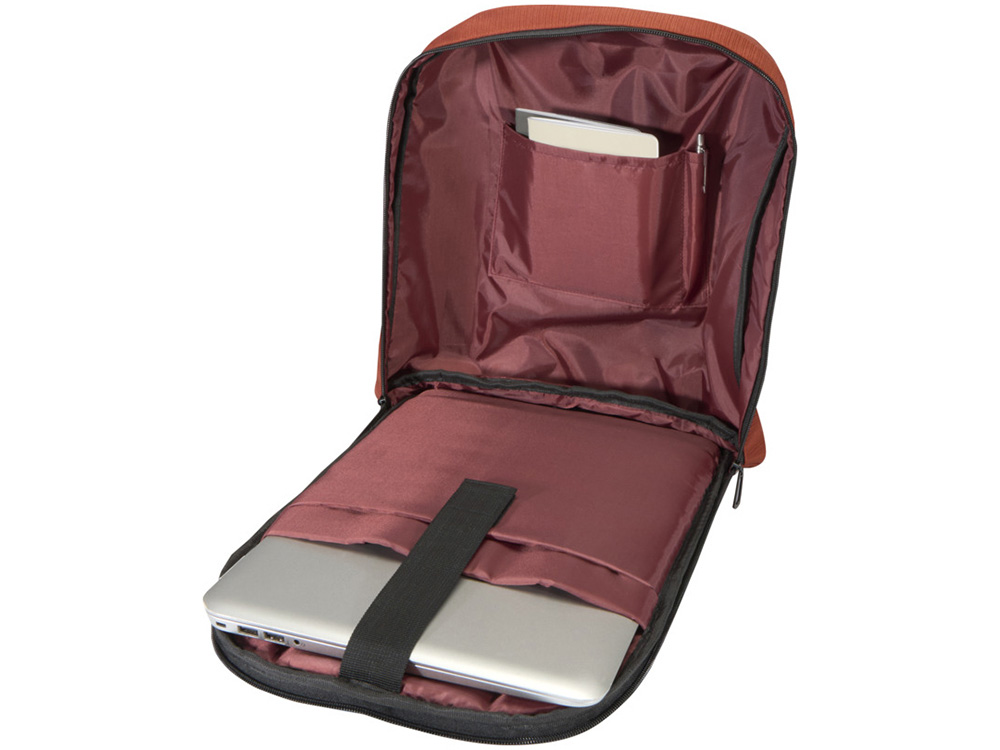 Рюкзак Luma для ноутбука 15 дюймов с защитой от кражи, изготовленный из переработанного жаккардового полиэстера с подкладкой из переработанного ПЭТ-пластика в тон, сочетает в себе умную защиту и элегантный стиль для тех, кто всегда в движении. Функции защиты от кражи включают запирающиеся молнии (замок не входит в комплект) и скрытый задний карман, который также можно использовать как ручку для крепления к чемодану. Ткань водоотталкивающая, что защитит ваши вещи от небольшого дождя. Внутри вы найдете отделение для ноутбука с диагональю экрана до 15 дюймов, имеющее мягкую подкладку для устройств, специальный карман для планшета, органайзер для ручек и организованное хранилище для аккуратного хранения самых необходимых вещей. Конструкция также включает мягкие плечевые ремни, дышащую сетчатую спинку и металлические пластины спереди. Независимо от того, едете ли вы на велосипеде на работу, проезжаете через оживленный аэропорт или направляетесь на учебу, рюкзак Luma обеспечит вам комфорт и стиль на весь день. Полиэстер из переработки, сертифицированный GRS.