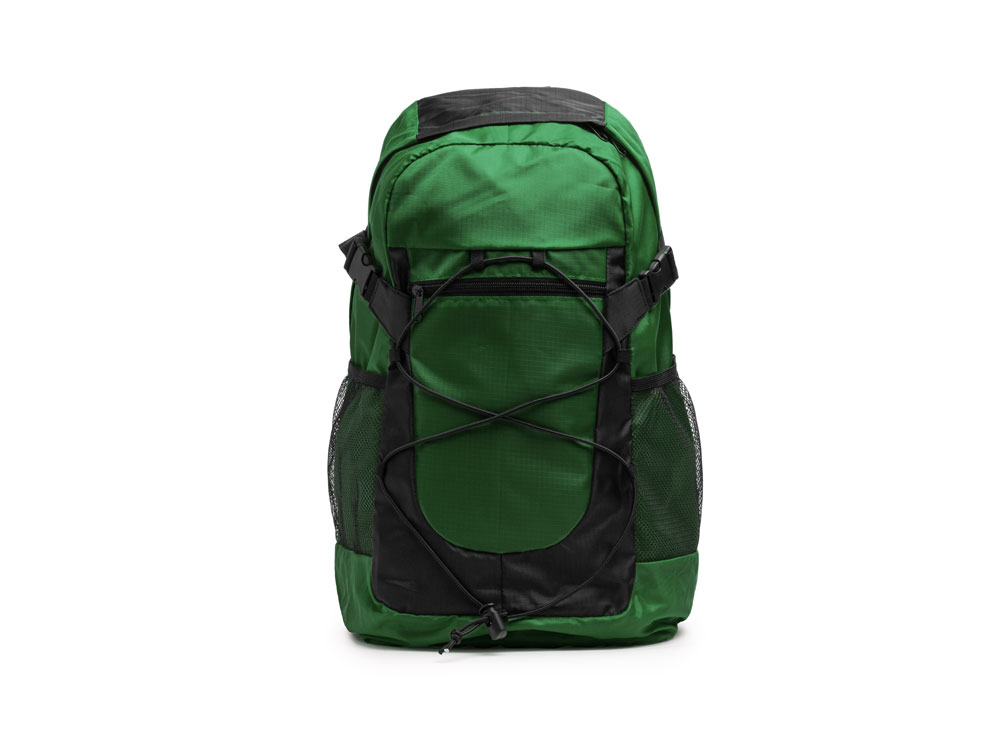 Спортивный рюкзак из высокопрочного нейлона Ripstop 210D. 30 литров. Двойное основное отделение на молнии и внутренние карманы. Переднее отделение на эластичном шнуре и боковые сетчатые карманы. Мягкая спинка и лямки. В комплекте регулируемый боковой ремень.