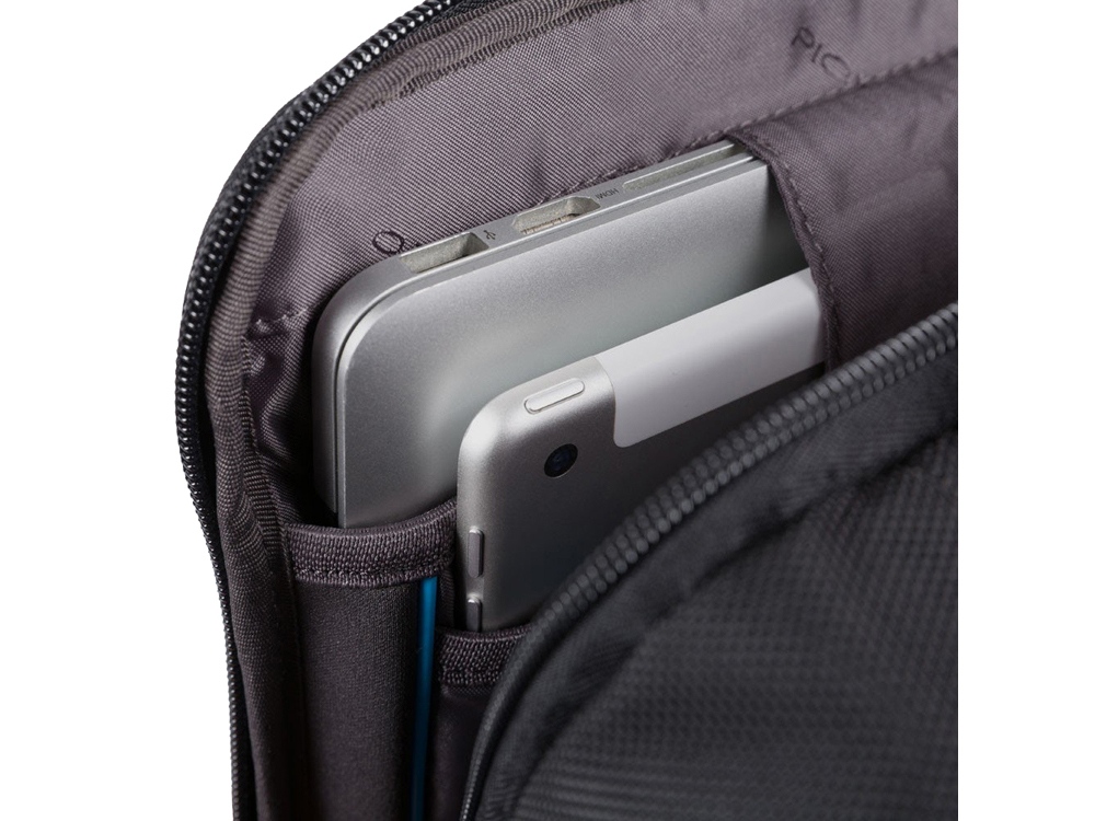 Рюкзак из переработанного текстиля с отделениями для ноутбука и iPad®, радиочастотной защитой и противокражным тросом - мягкое отделение для ноутбука 15,6 - отделение для iPad® 10,2'', iPad® Air 10,9'', iPad®Pro 11'' - внутренний карман для мобильного телефона - карман для AirPods® - складной карман для бутылки - карман для зонта - петля для ручки - карман для мелких предметов - отстегиваемая адресная бирка - ремень для крепления на ручке чемодана