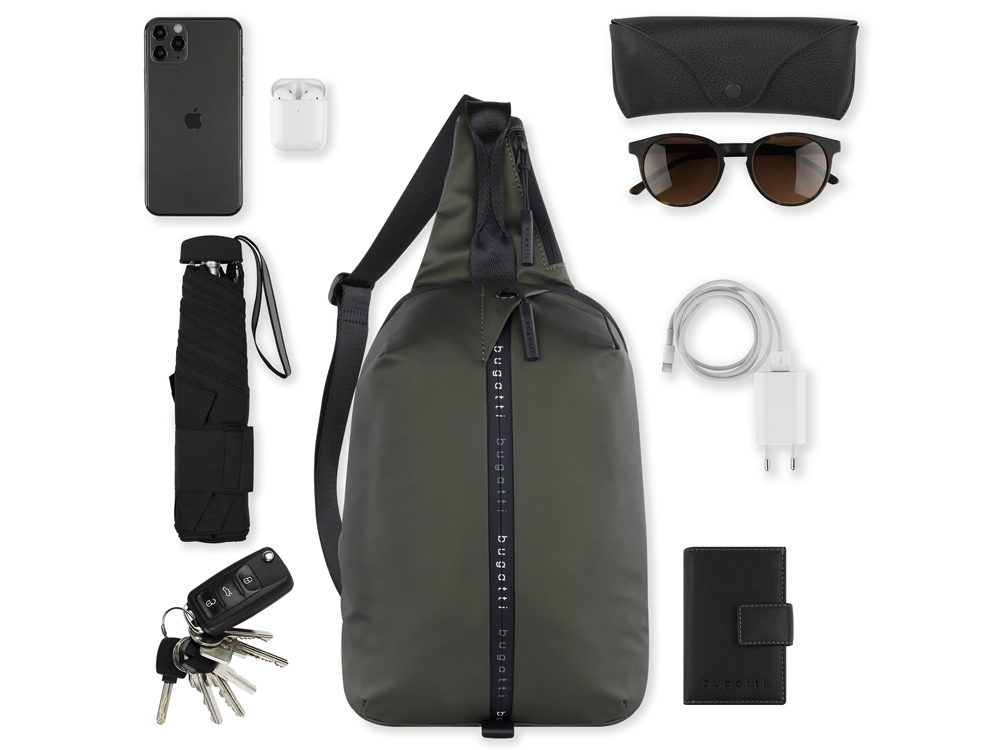 РЮКЗАК С ОДНИМ ПЛЕЧЕВЫМ РЕМНЁМ БЛАНК | BLANC Рады представить вам нашу новую серию универсальных и чрезвычайно стильных сумок и рюкзаков БЛАНК | BLANC. В этой линейке наши дизайнеры добились идеального сочетания дизайна, функциональности и пригодности для повседневного использования. В качестве основного материала используется тарпаулин - очень лёгкая ткань с водоотталкивающими свойствами. Скрытые молнии с логотипом Bugatti не только защищают от проникновения влаги, но и дополняют стильный дизайн коллекции. С сумками БЛАНК | BLANC будьте готовы быть в центре внимания! СВОЙСТВА: Внутренняя организация: основное отделение на молнии с открытым карманом Внешняя организация: передний карман на молнии с открытым карманом, задний потайной карман на молнии, малый карман на молнии на ремне, верхняя ручка, регулируемый мягкий плечевой ремень со съёмным карабином для ношения рюкзака с правой или с левой стороны (до 80 см) Размер: 18 x 9 x 30 см Вес: 0,25 кг Материал: тарпаулин / полиэстер