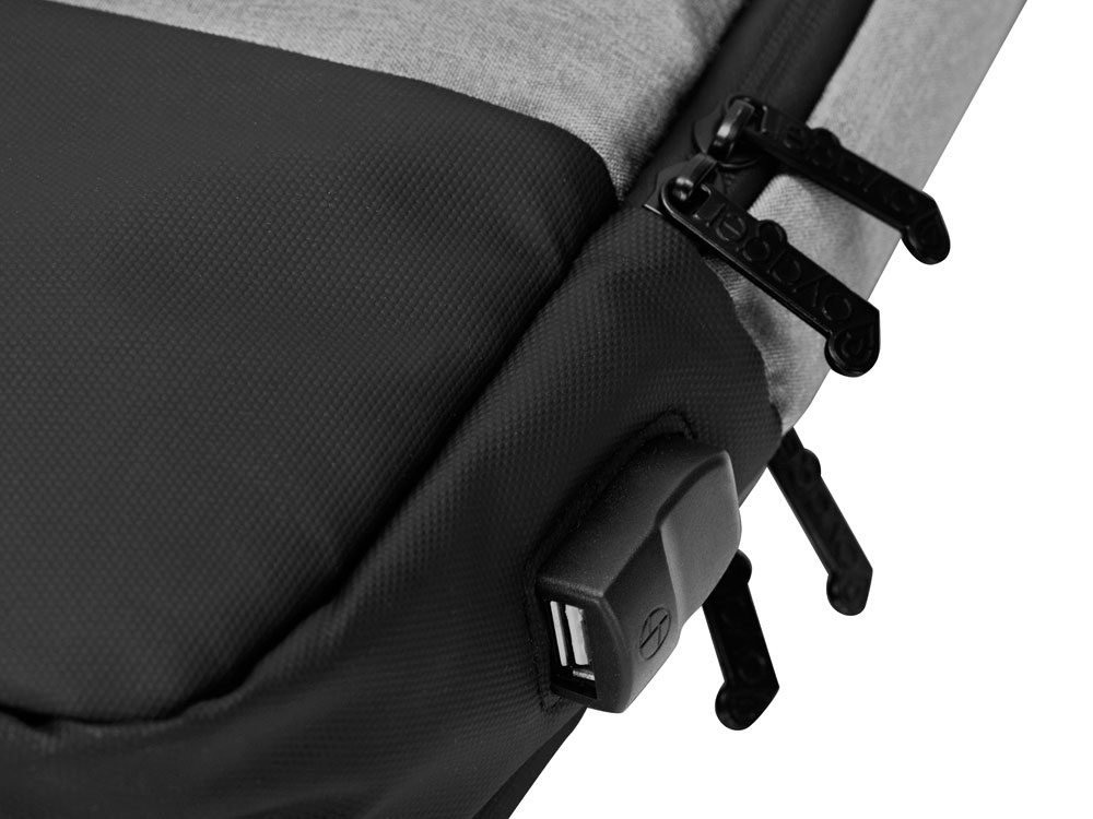 Компактный и функциональный городской рюкзак с двумя отделениями. В одно можно положить планшет или ноутбук с диагональю до 15.6. Другое, снабженное органайзером, удобно для хранения всего необходимого в поездке или для работы. - спереди вместительный наружный карман на молнии - потайной карман на молнии на спинке - внешний USB порт для зарядки устройств - эргономичные лямки с регулировкой длины - дышащая сетка на спинке - вместимость 20 л - максимальная нагрузка 10 кг - нетканый мешок для хранения в комплекте - удобная ручка для переноски