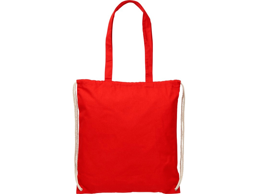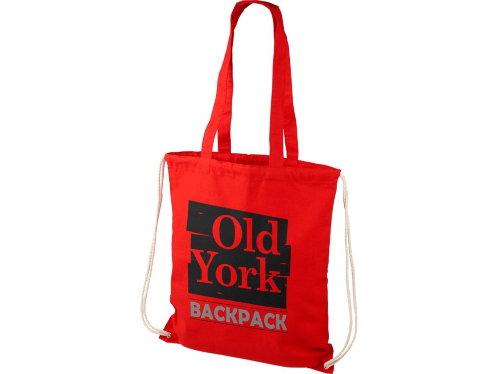 Многофункциональный хлопчатобумажный мешок с длинными ручками и затягивающим шнурком, который можно носить в качестве сумки для покупок или рюкзака. Большой основной отсек, закрывающийся затяжкой шнурка. Имеет две выпадающие ручки длиной 31 см. Вместимость: 16 л, выдерживает до 5 кг веса. Хлопок, 240 g/m2.