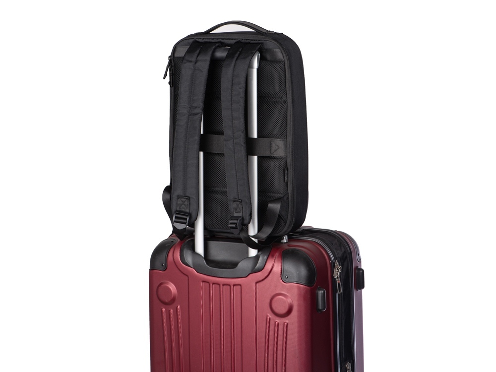Бизнес-рюкзак с каркасом, позволяющим сохранять идеальную форму. - карманы для ноутбука и планшета на эластичных креплениях - потайной карман на молнии на спинке - спереди наружный карман для документов - органайзер с сетчатыми карманами на молниях внутри - карабин для ключей - ремень для крепления на ручку чемодана - степень раскрытия рюкзака регулируется боковыми фиксаторами на липучках и кнопках - сетчатая спинка - лямки регулируются по длине - нетканый мешок для хранения в комплекте