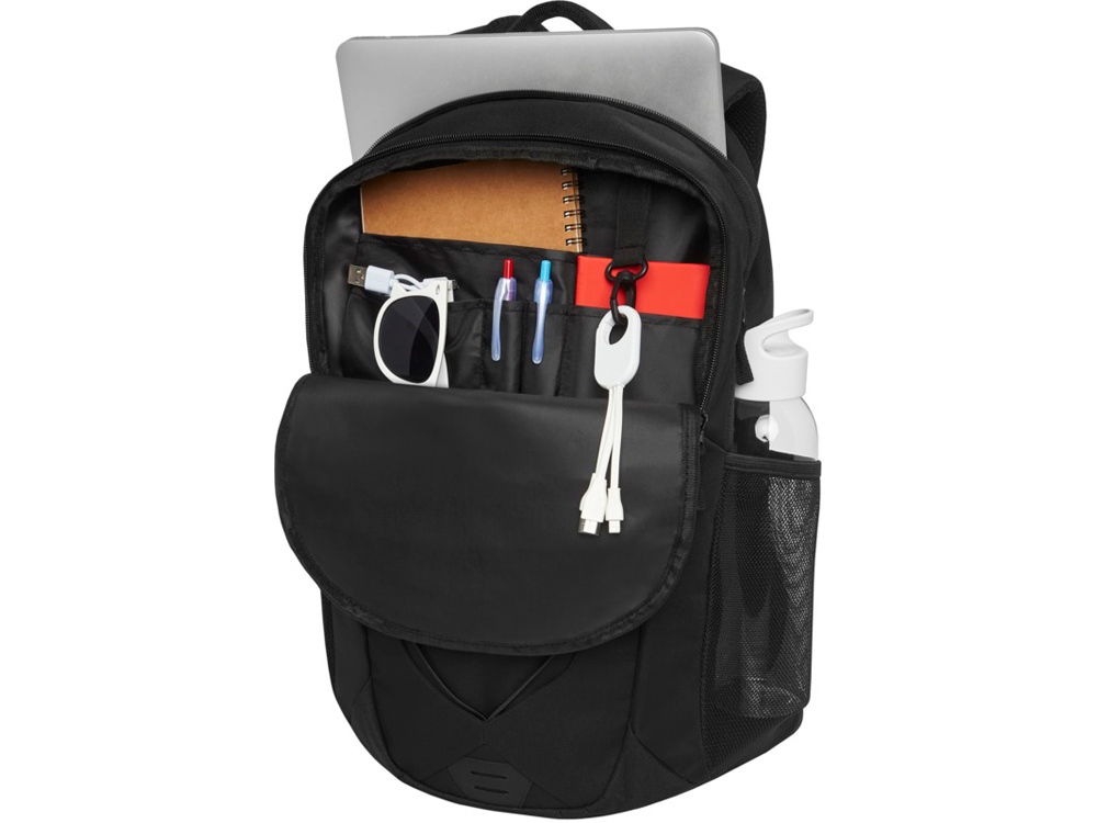 Комбинация походного и ежедневного рюкзака с цветной отделкой и эластичным шнурком со светоотражающими элементами на передней панели. Имеет два внешних сетчатых кармана для хранения бутылок с водой, переднее отделение с несколькими небольшими отделами, крючок для удобного хранения и чехол для планшета размером 12. Рюкзак оснащен укрепленной ручкой и удобной спинкой со смягчающими прокладками. Мягкий чехол внутри главного отделения подходит для ноутбука размером 15,6.