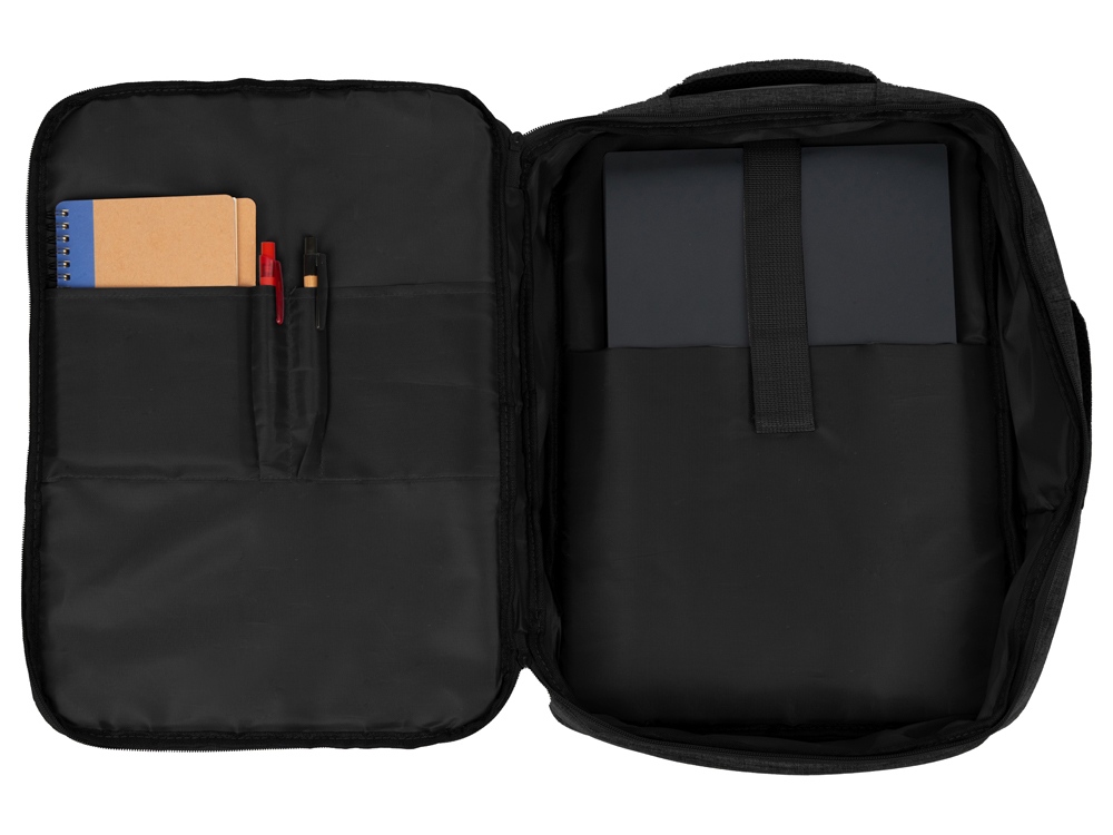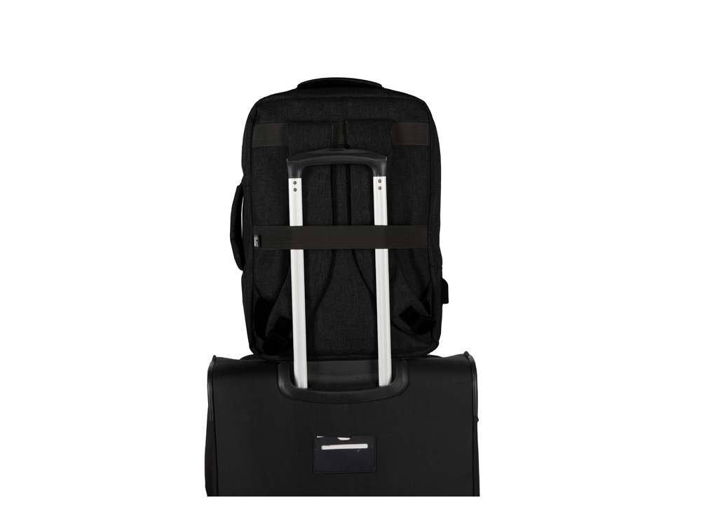Легкий, удобный и вместительный в деловых поездках. Рюкзак трансформируется в деловую сумку благодаря второй ручке. Основное отделение с органайзером имеет глубину 11 см, что позволяет хранить в нем одежду и все необходимое для командировок. Для большего удобства рюкзак оснащен USB выходом и ремнем для крепления к чемодану. Лямки регулируются по длине.