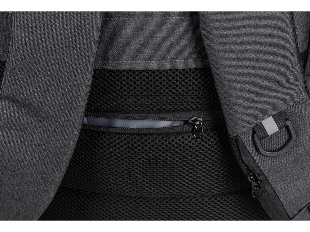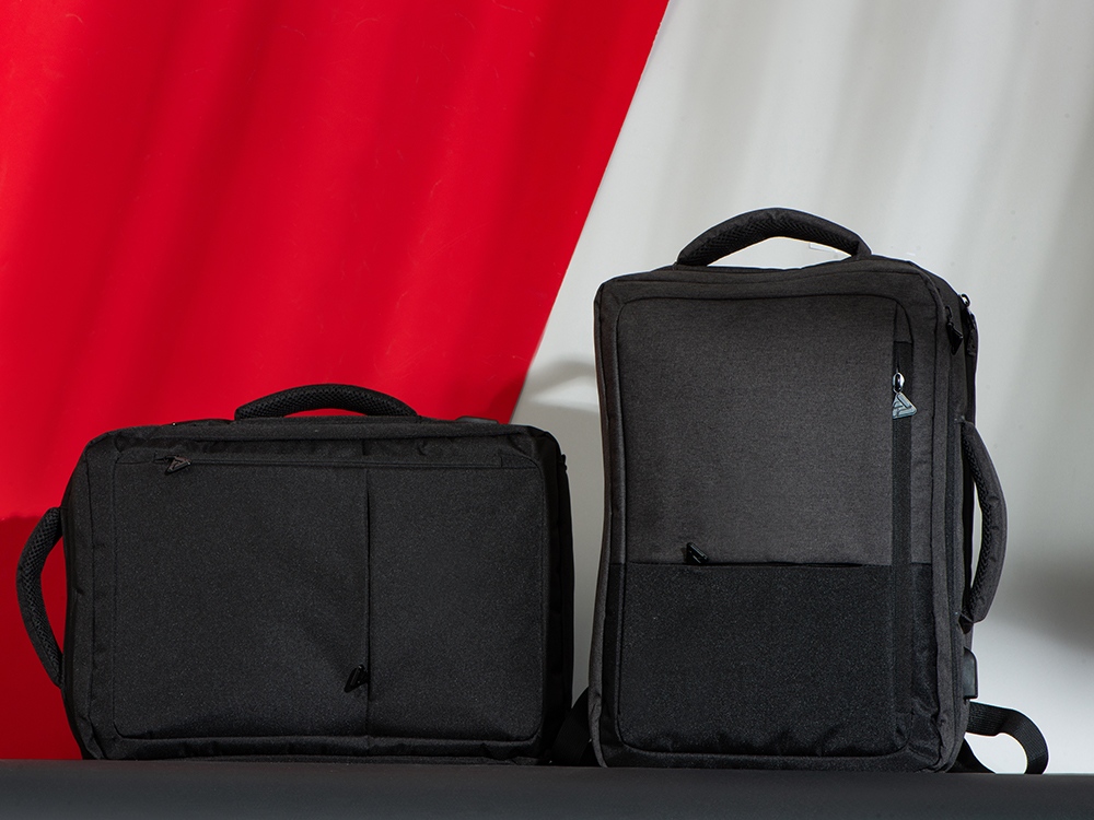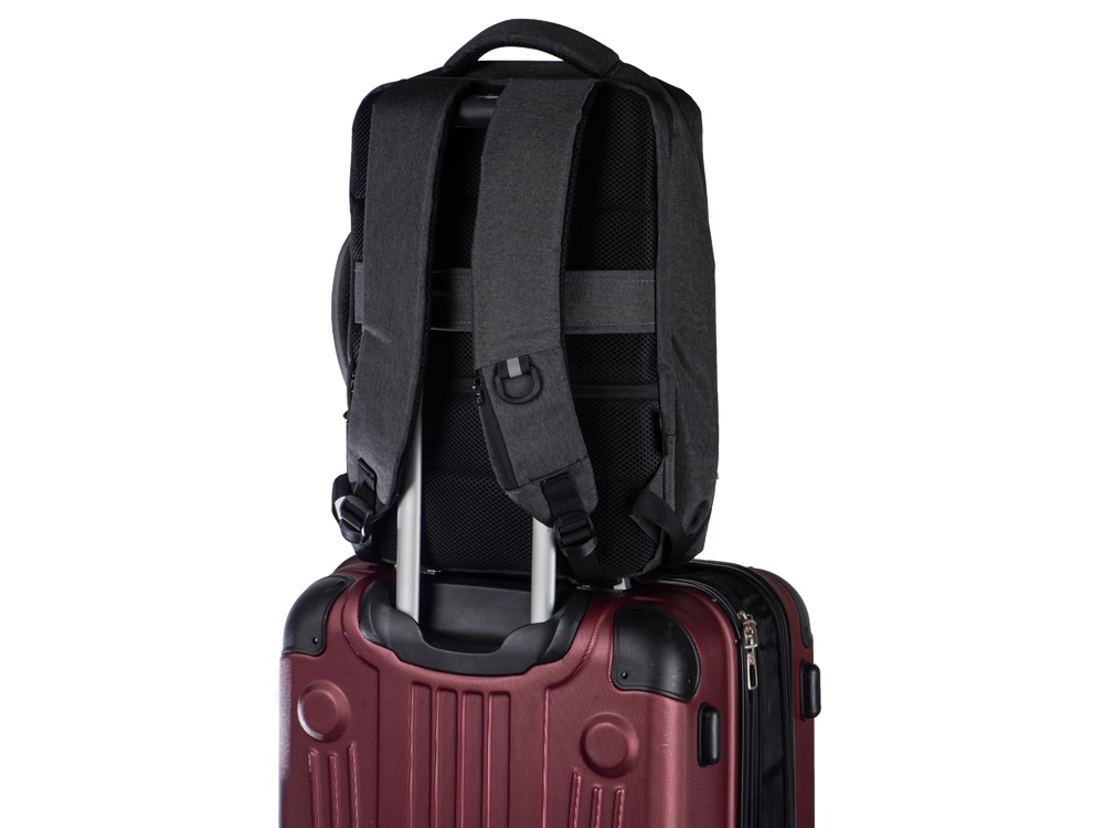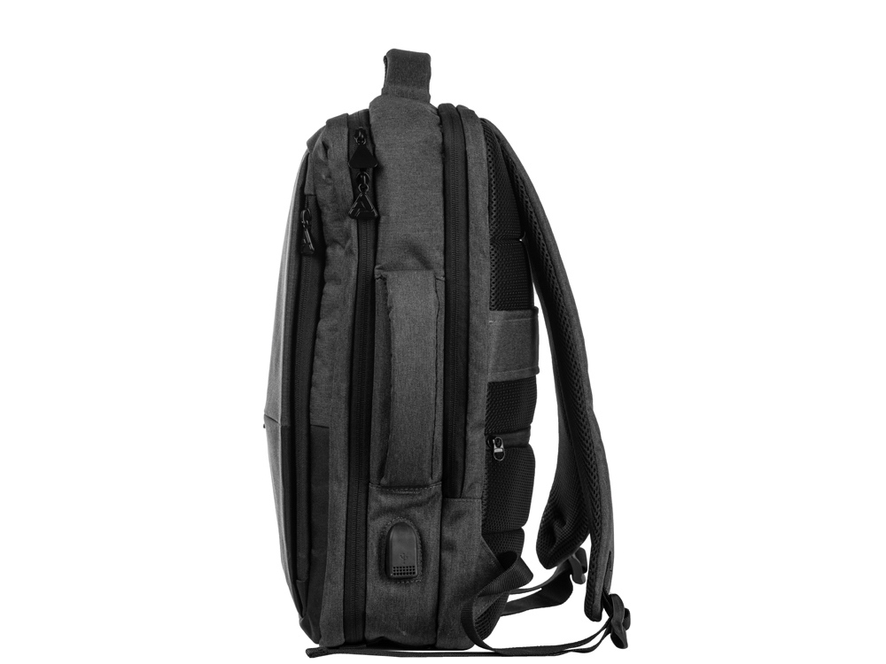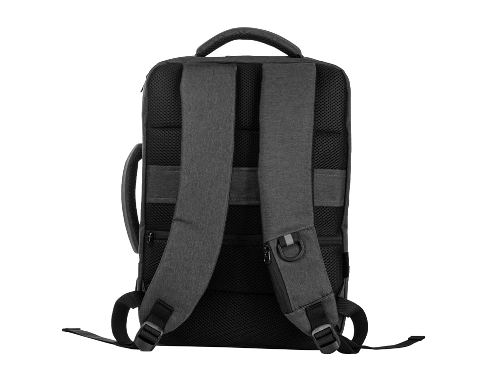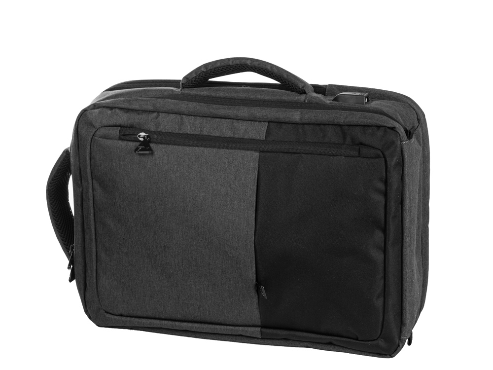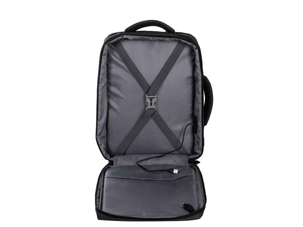 Уникальный и удобный рюкзак-трансформер может легко превратиться в элегантную сумку для деловых поездок благодаря двум вариантам использования. - большое отделение с эластичными фиксирующими ремнями для одежды и карабином для ключей - отделение для ноутбука с органайзером - спереди 2 кармана на молниях - USB выход - на спинке потайной карман на молнии - регулирующиеся по длине лямки - светоотражающий элемент и карман на молнии для карточек и других ценных мелочей на лямке - ремень для крепления на чемодан - дышащая спинка