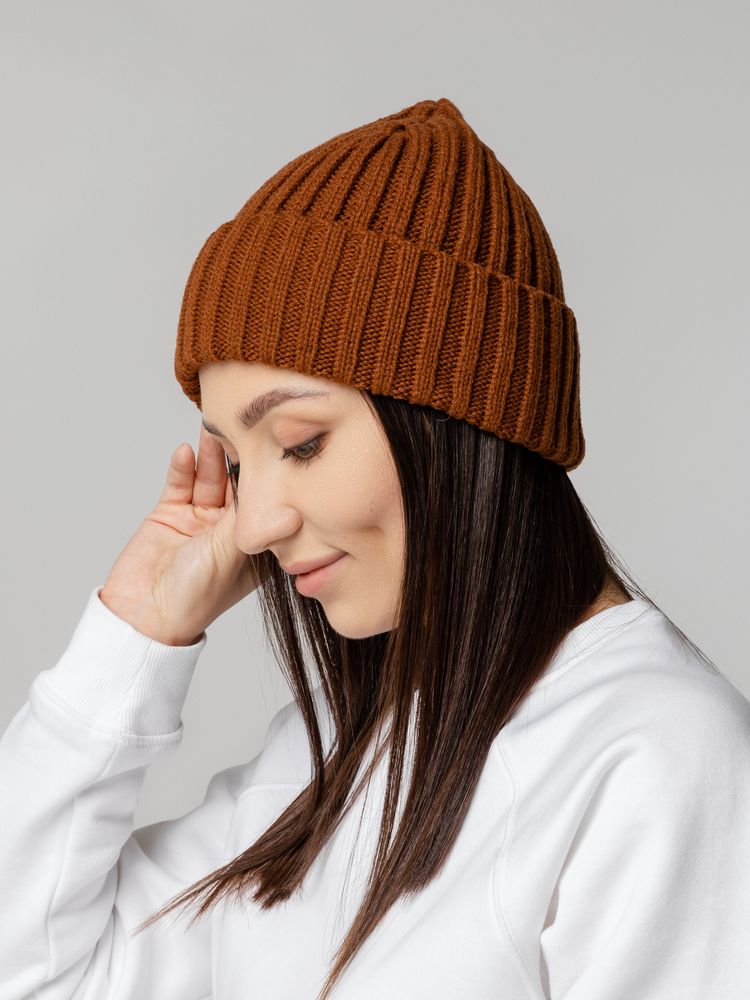 Шапка Uni, коричневая (терракота) купить оптом и в розницу с нанесением логотипа в Уфе