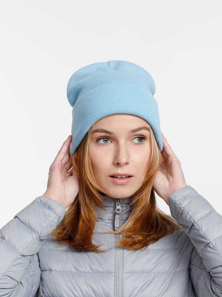 Двухслойная шапка из акриловой пряжи с регулируемым отворотом 7–10 см.