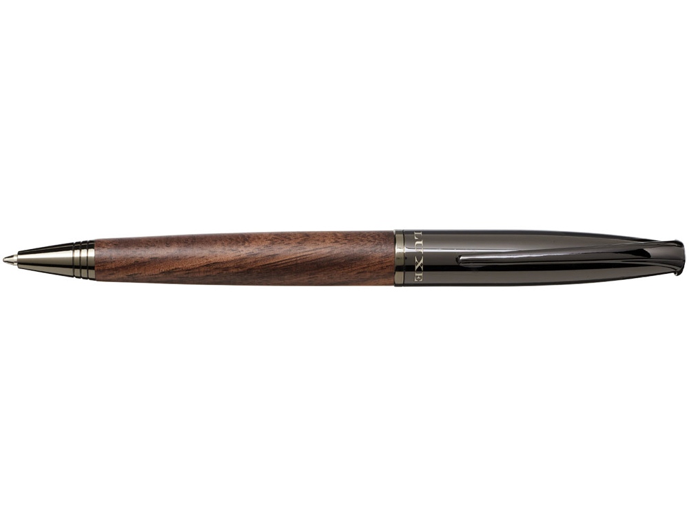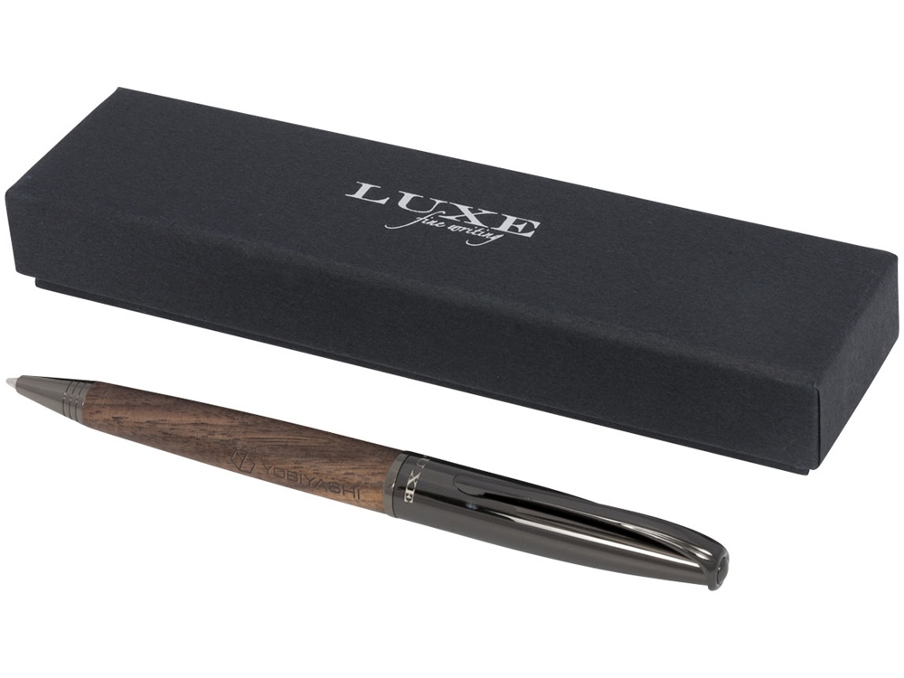 Шариковая ручка с поворотным механизмом и деревянным корпусом, изготовленная из латуни с хромированным покрытием, в подарочной коробке LUXE.