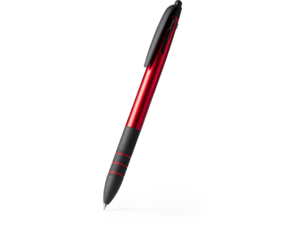 Шариковая ручка с чернилами 3-х цветов. Корпус из АБС-пластика и черные детали с удобным грипом. Синие, черные и красные чернила.