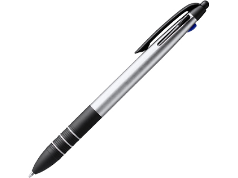 Шариковая ручка с чернилами 3-х цветов. Корпус из АБС-пластика и черные детали с удобным грипом. Синие, черные и красные чернила.