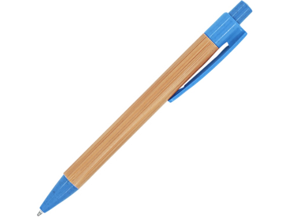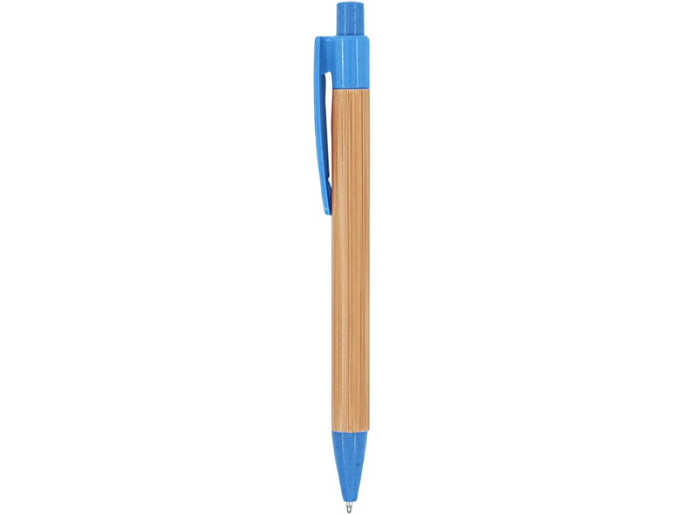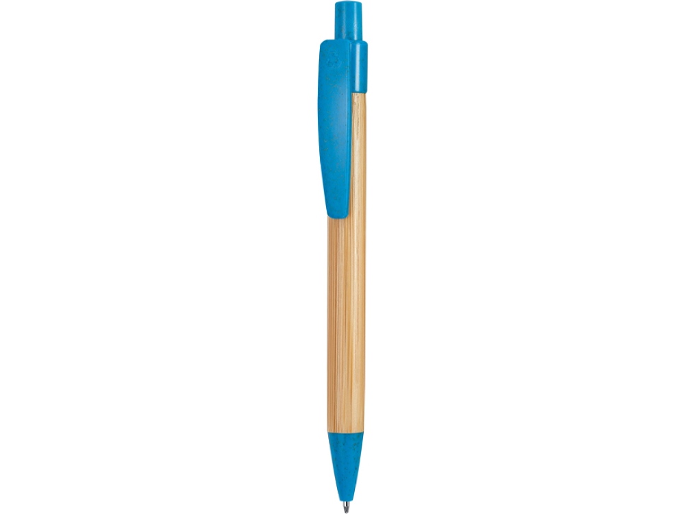 Шариковая ручка с бамбуковым корпусом. Наконечник, клипса и кнопка из пшеничного волокна / ABS. Синие чернила.
