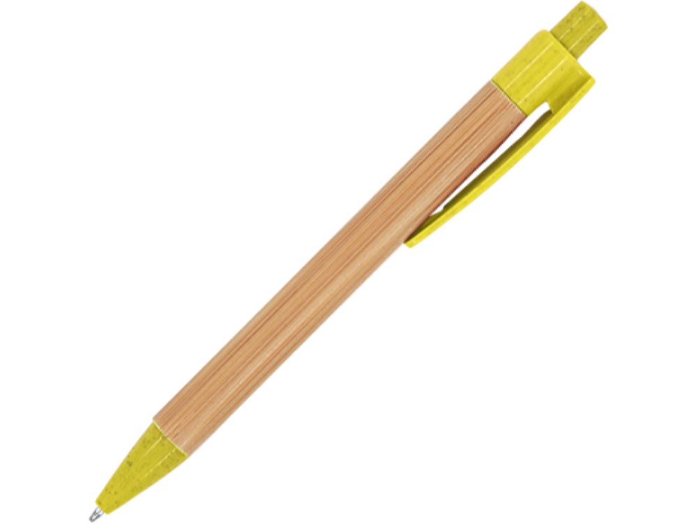 Шариковая ручка с бамбуковым корпусом. Наконечник, клипса и кнопка из пшеничного волокна / ABS. Синие чернила.