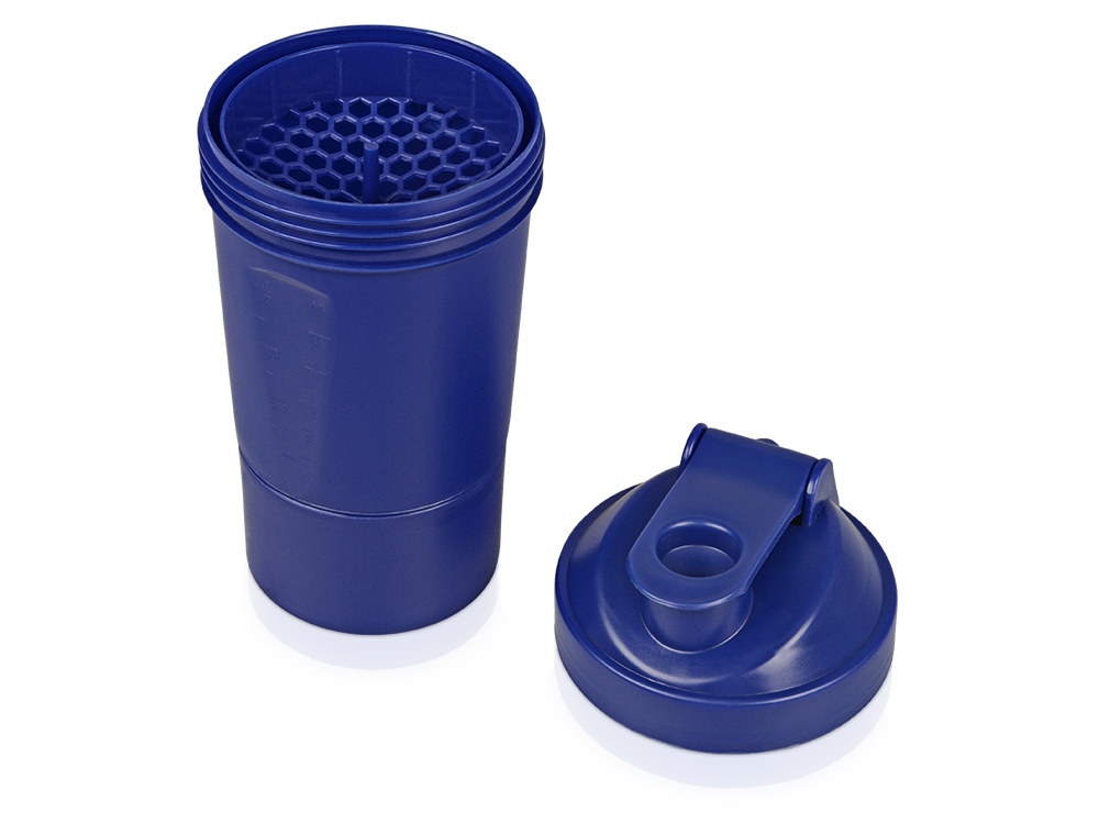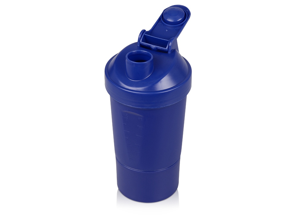 Шейкер для спортивного питания - это один из необходимых аксессуаров для спортсменов и людей, ведущих активный образ жизни. В нем можно приготовить протеиновый коктейль или фруктовый напиток. Шейкер классической формы, он удобно лежит в руке, к донышку прикручивается емкость для смешивания (таблетница), в которой можно хранить спортивные добавки: протеиновый порошок, витамины и другие концентраты. Внутри колбы имеется пластиковая сетка, чтобы процеживать спортивный напиток, а также металлический размешиватель, который растворяет порошок в напитке без комочков. Объем - 400мл. Шейкер изготовлен из пищевого пластика, он герметичен и легко моется. Шейкер имеет приятное на ощупь матовое покрытие, но подверженное незначительным дефектам (царапинам). Шейкер с нанесением - это классный и полезный спортивный подарок для коллеги, руководителя и сотрудников компании.