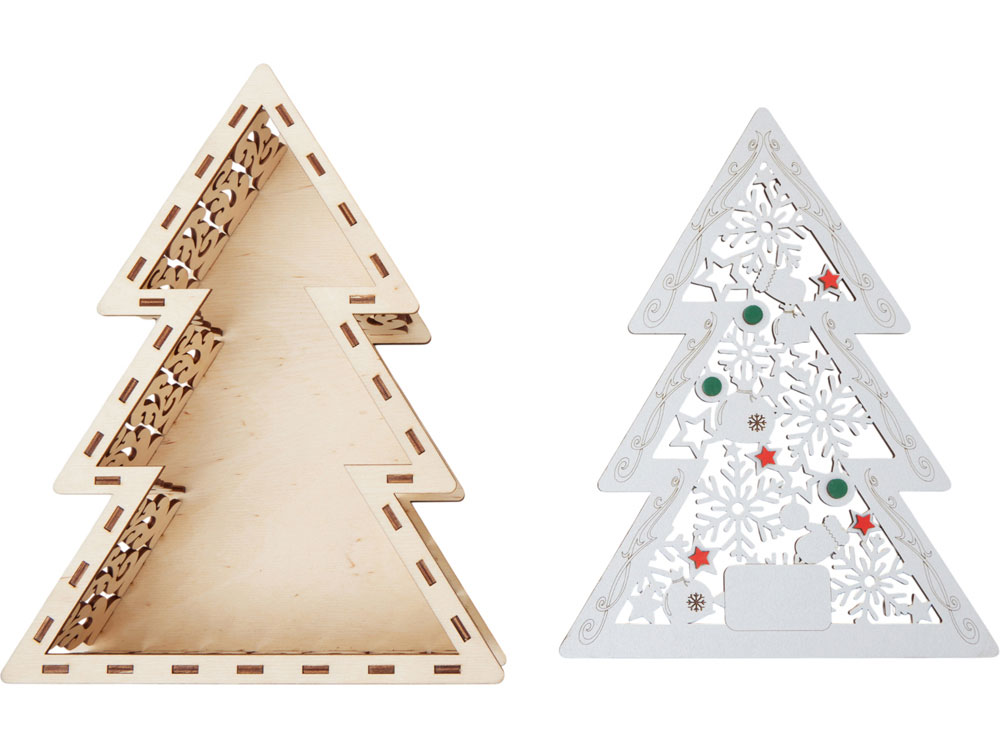 Шкатулка из натуральной березовой фанеры в форме ёлки. Минималистичный дизайн и качественный материал делают её практичным и эстетичным аксессуаром. Подходит для хранения мелочей, украшений или как упаковка для небольших подарков. Идеальный вариант корпоративного сувенира, который подчёркивает внимание к деталям.