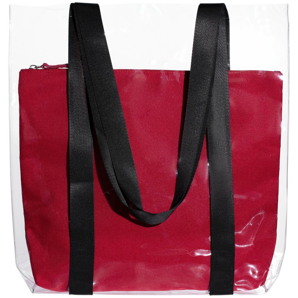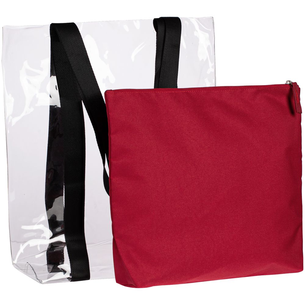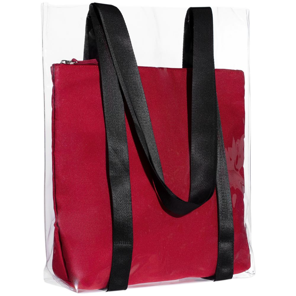 Шопер Clarity с красным органайзером, прозрачный купить оптом и в розницу с нанесением логотипа в Уфе
