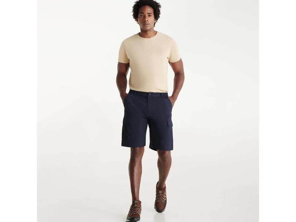 Шорты карго - регулируемый эластичный пояс по бокам - два передних кармана - два боковых кармана карго со складкой и клапаном с застежкой на липучку - два задних кармана с застегиваются на пуговицу