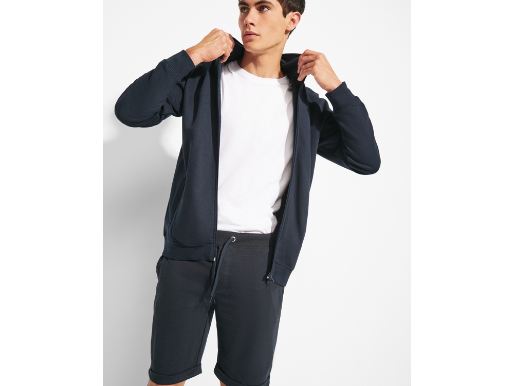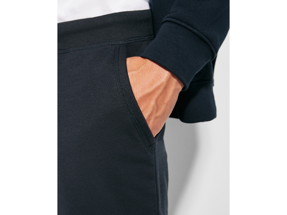 Спортивные шорты с широким эластичным поясом со шнуром для регулировки. Боковые карманы, задний карман и отвороты внизу с усиленными строчками.