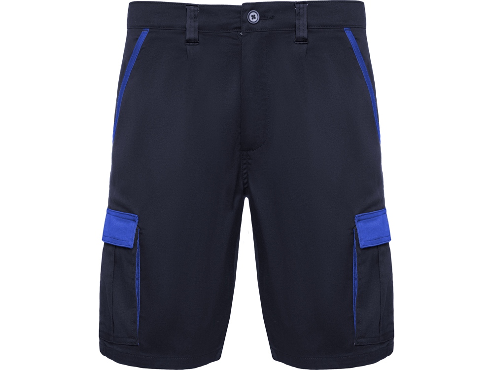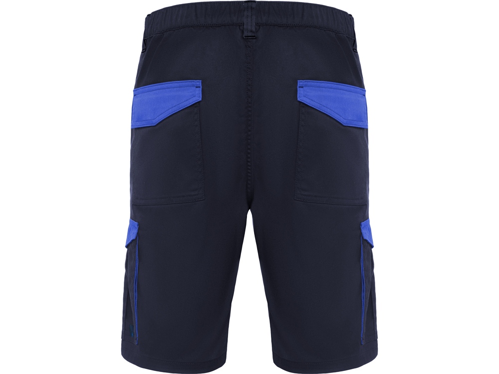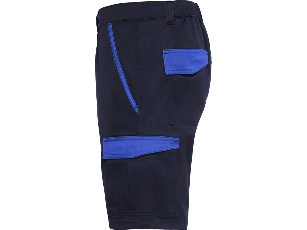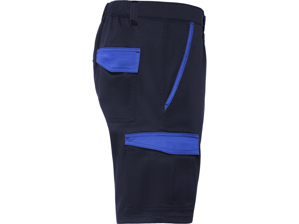 Шорты в двухцветной комбинации - Удобная и регулируемая ткань. - Контрастные петли для ремня, клапаны, складка и кант по краю кармана - Эластичный пояс сзади. - Два передних кармана. - Два задних кармана с клапаном и застежкой-липучкой. - Два боковых кармана со складкой и клапаном застегиваются на липучку.
