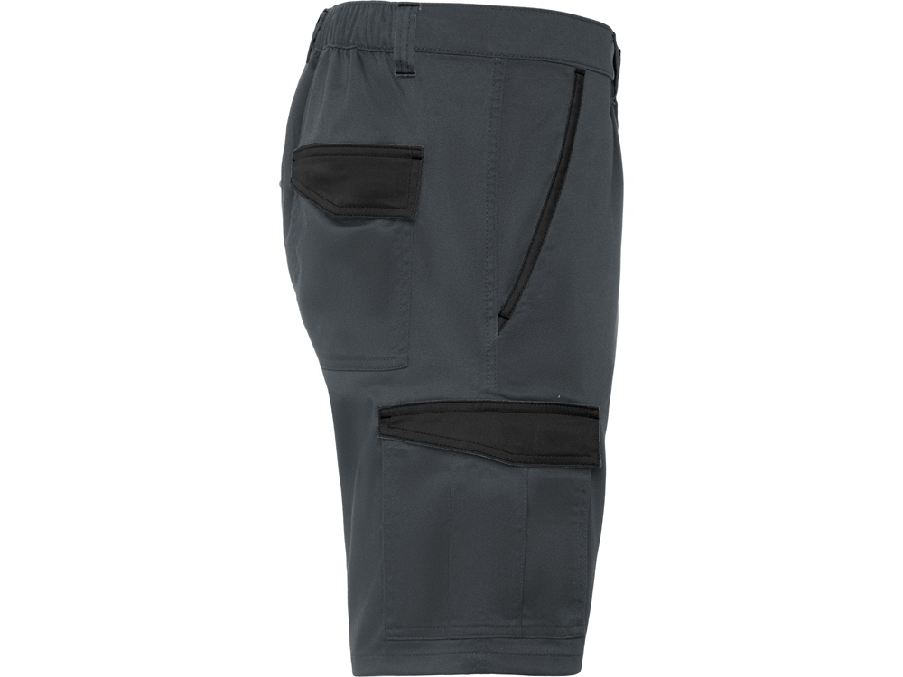 Шорты в двухцветной комбинации - Удобная и регулируемая ткань. - Контрастные петли для ремня, клапаны, складка и кант по краю кармана - Эластичный пояс сзади. - Два передних кармана. - Два задних кармана с клапаном и застежкой-липучкой. - Два боковых кармана со складкой и клапаном застегиваются на липучку.